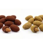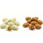 Amêndoas cobertas com chocolate branco straciatella e amêndoas cobertas de chocolate com sal marinho