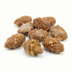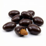 Amêndoas de chocolate de leite, cobertas com chocolate e canela em pó ou café em pó