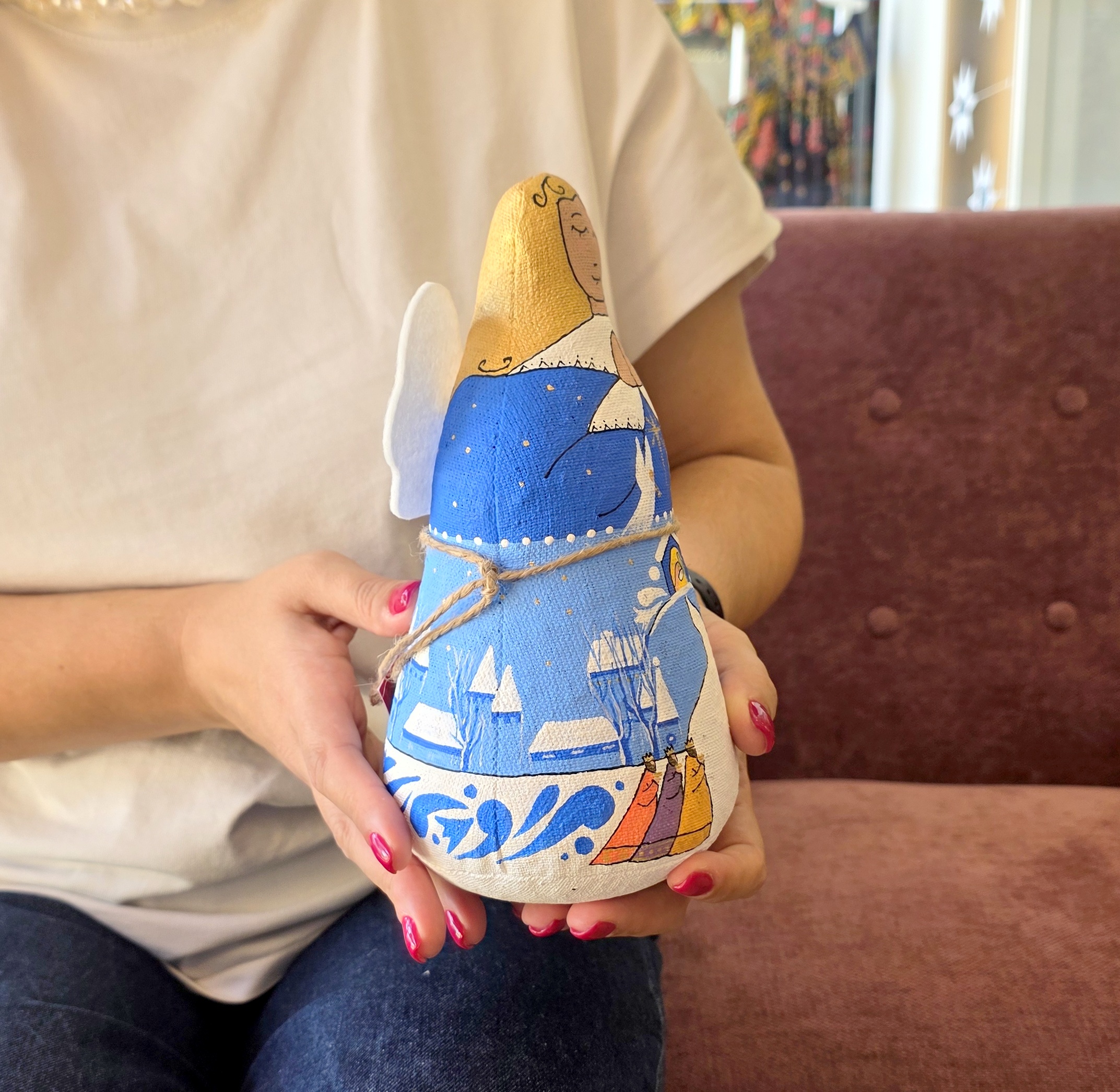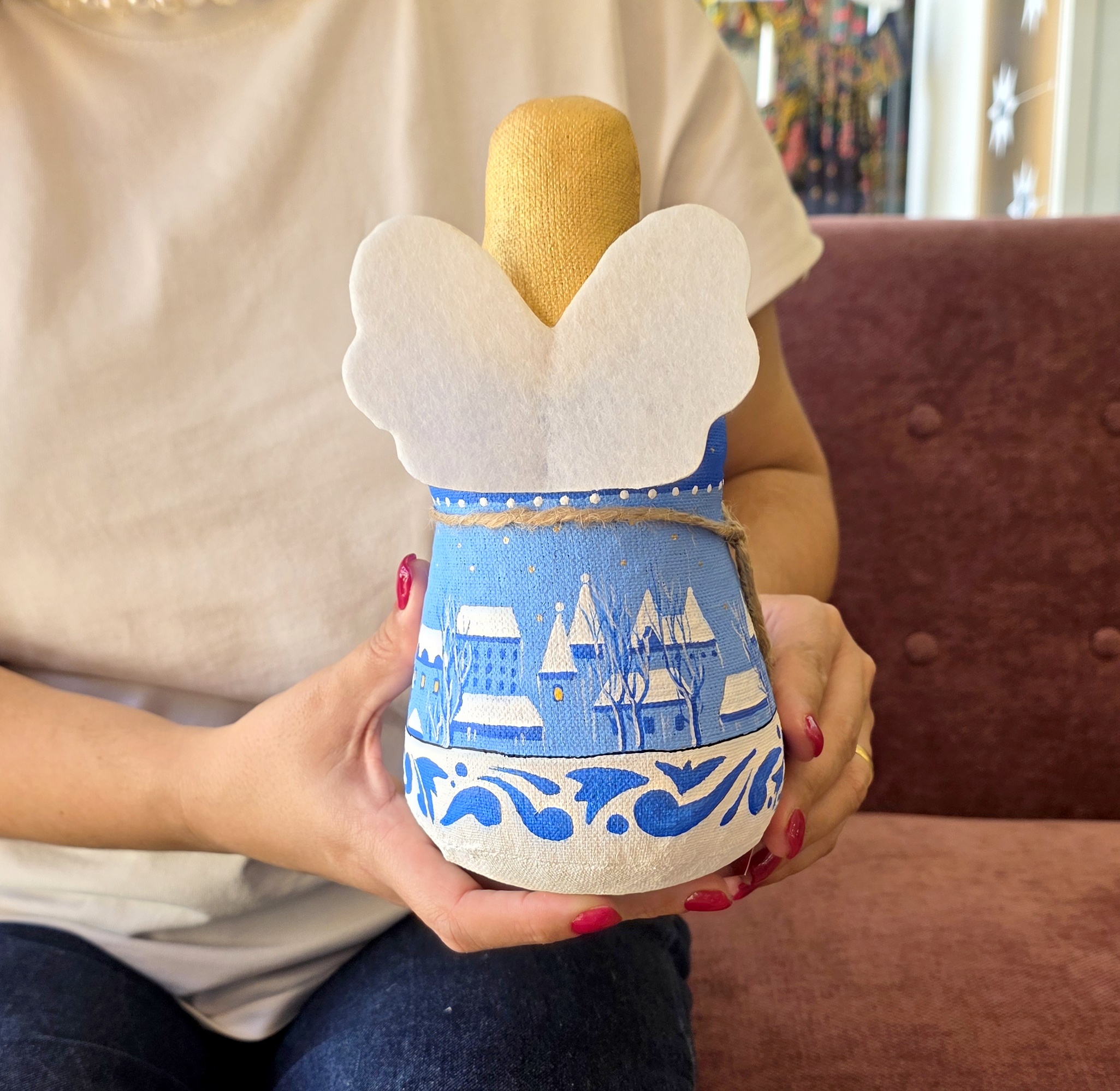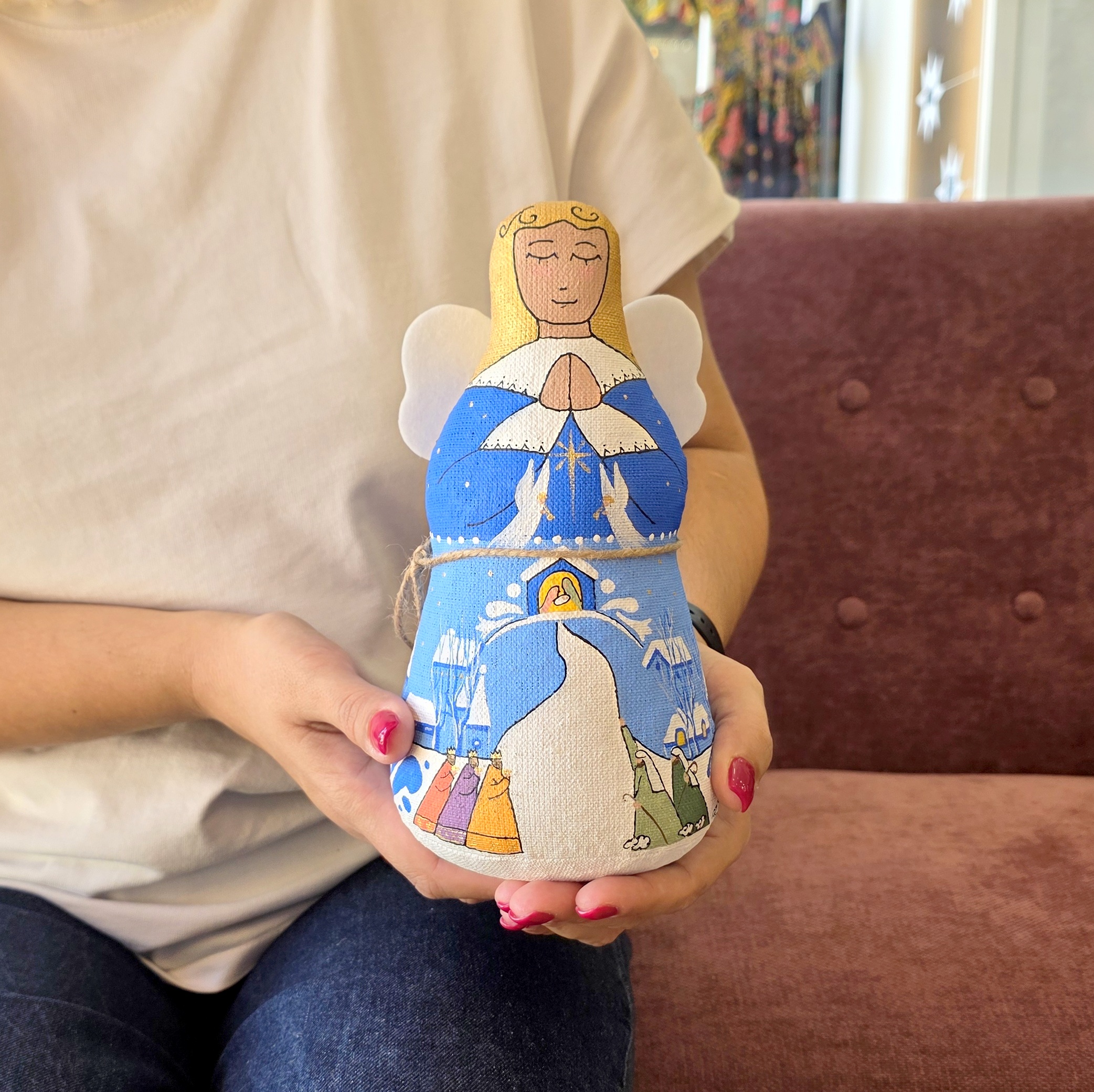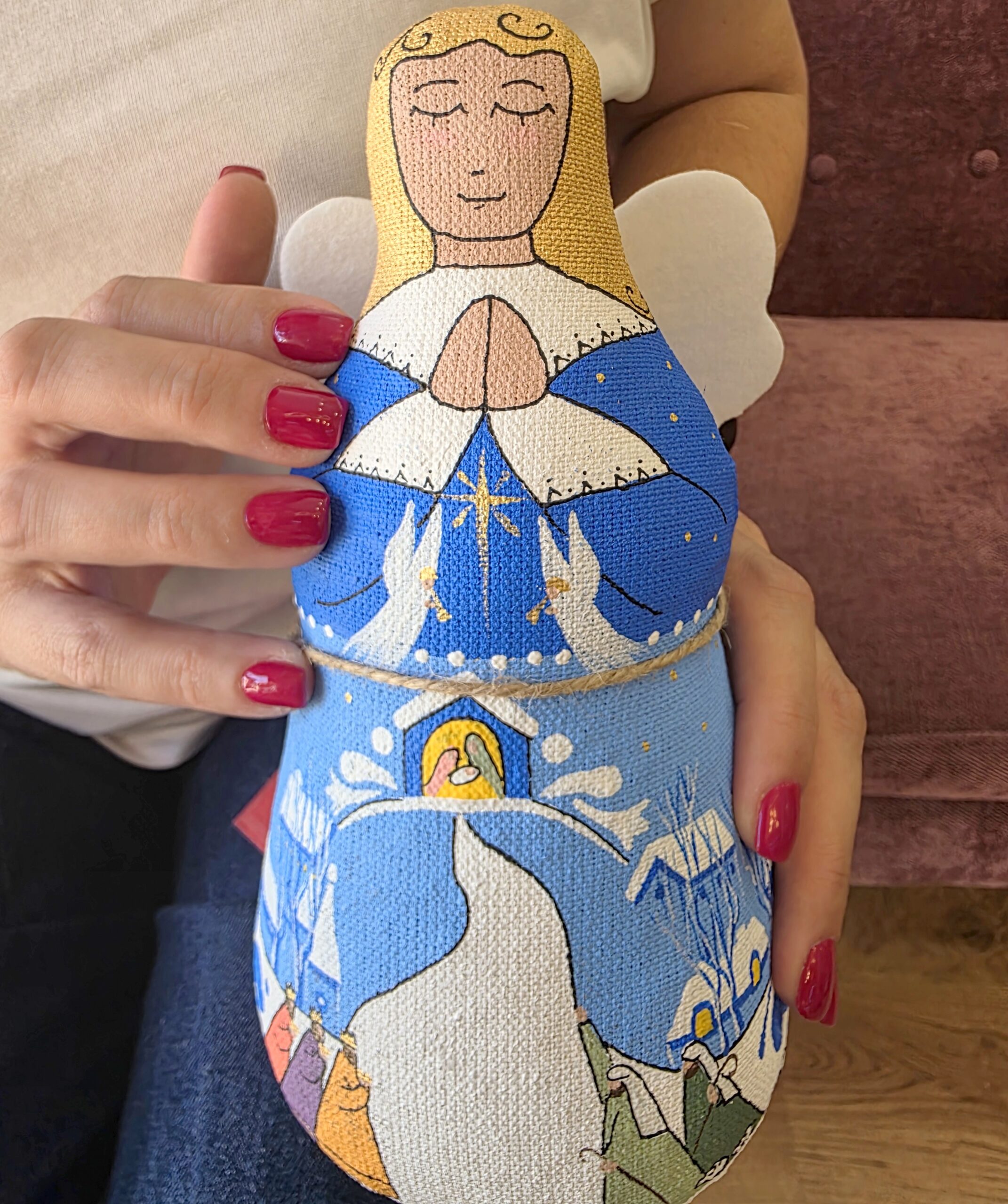 – Anjo com Sagrada Família “Oh Holy Night”: artesanato Ucraniano
