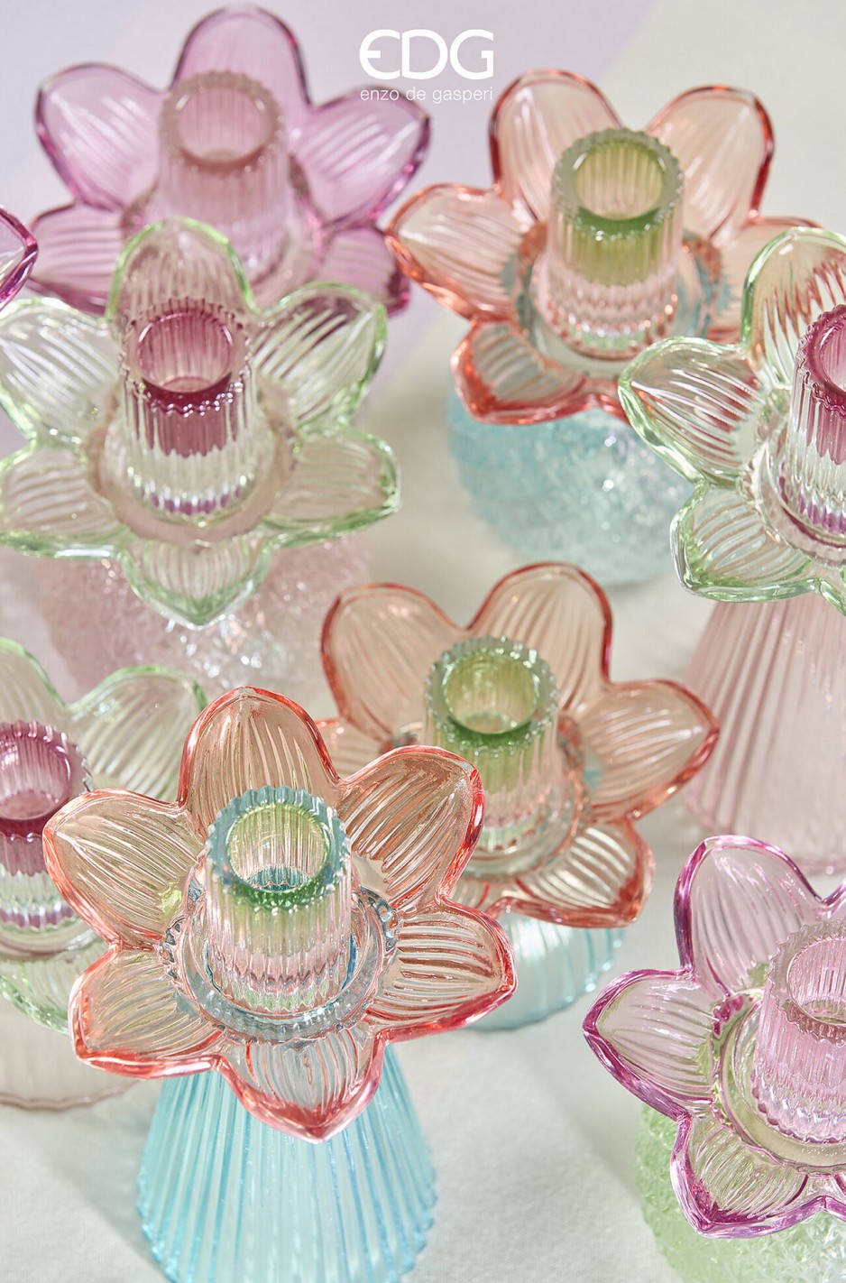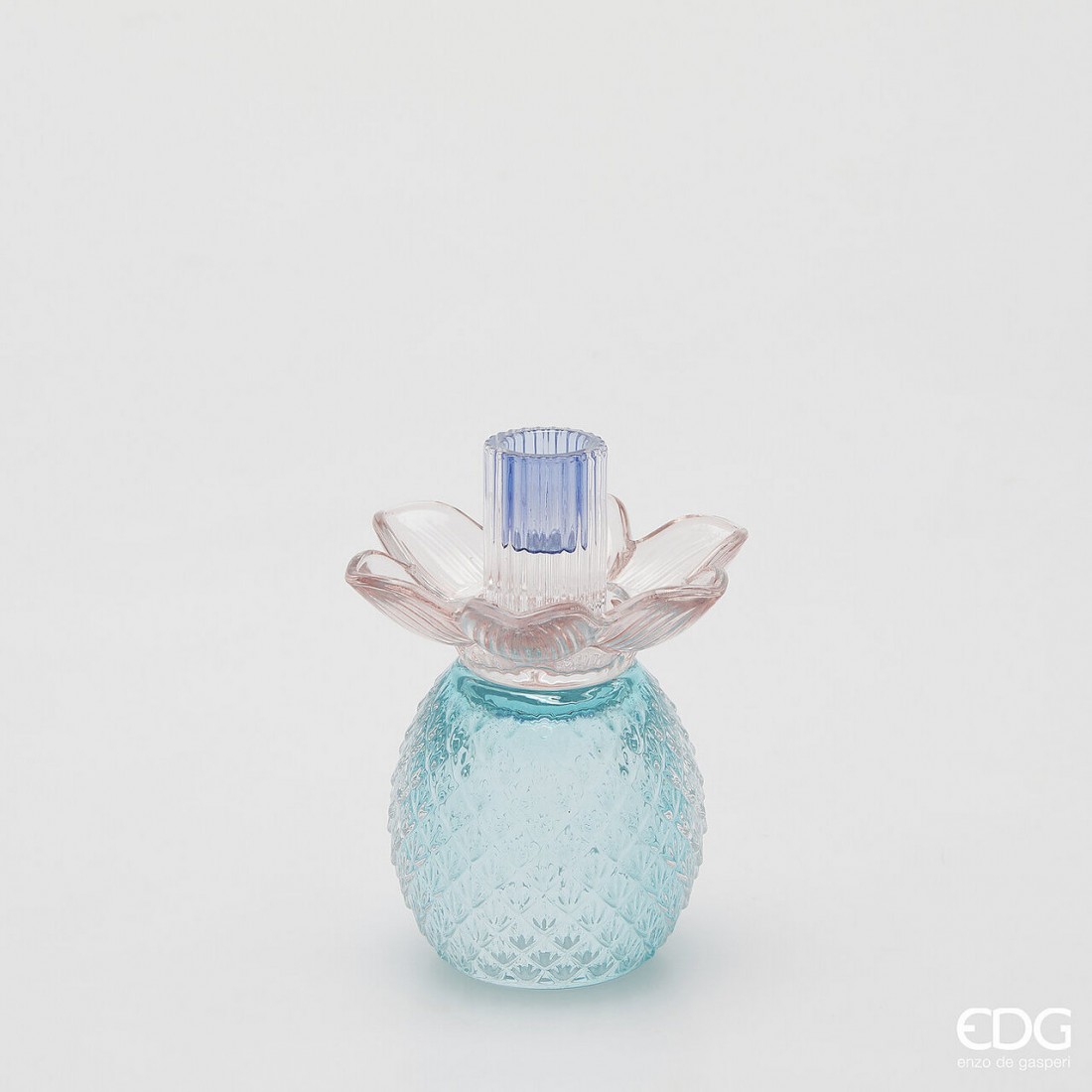 – Castiçal em Vidro Flor baixinho 16cm: Azul