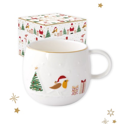 – Chávena grande decorada em relevo Let it Snow – Passarinho: Easylife