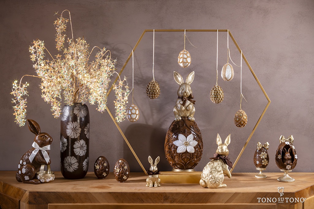 – Coelho com Cesto Castanho e Dourado (imita Chocolate) 33cm: em caixa oferta