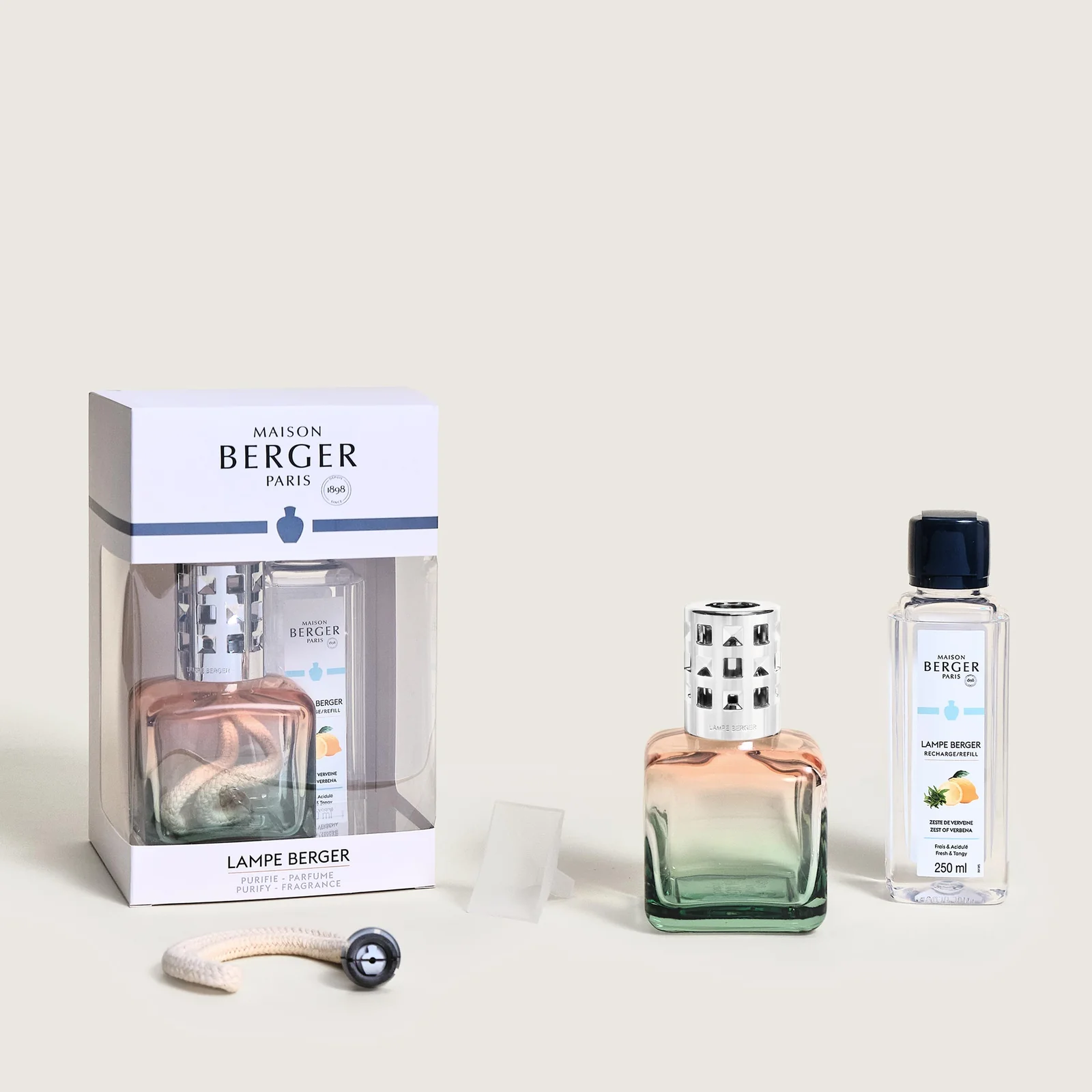 – Coffret Lâmpada Catalítica Glaçon Pêssego e Verde + 250ml Zest de Verbena
