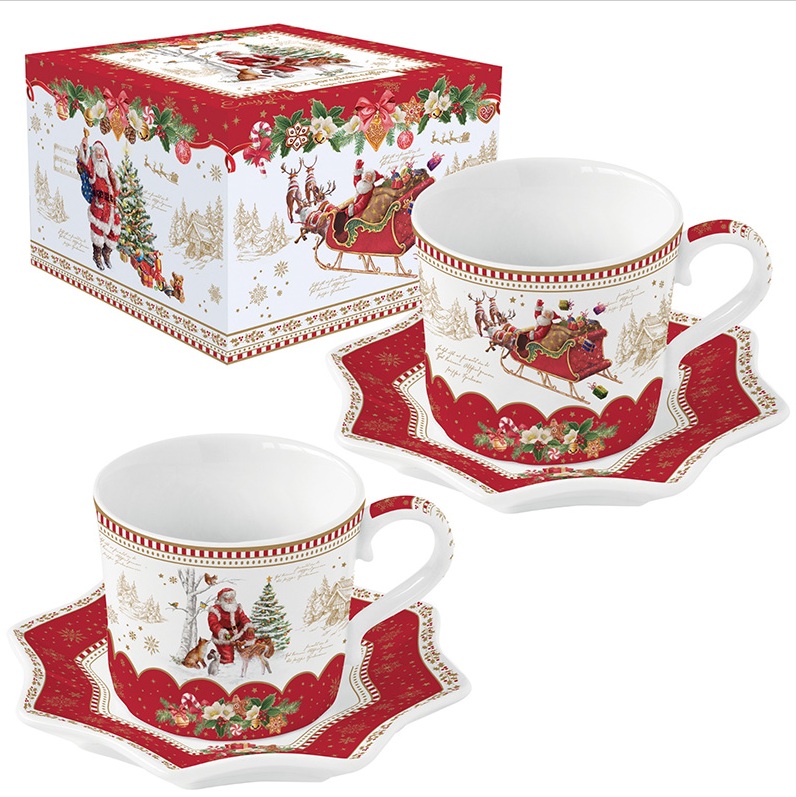 Conjunto 2 chávenas de café + pires Christmas Memories: Easylife