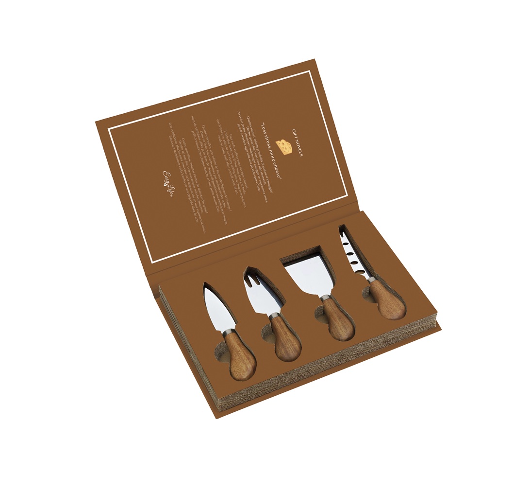 – Inclui: faca queijos, garfo de queijos, espátula queijos e faca especial