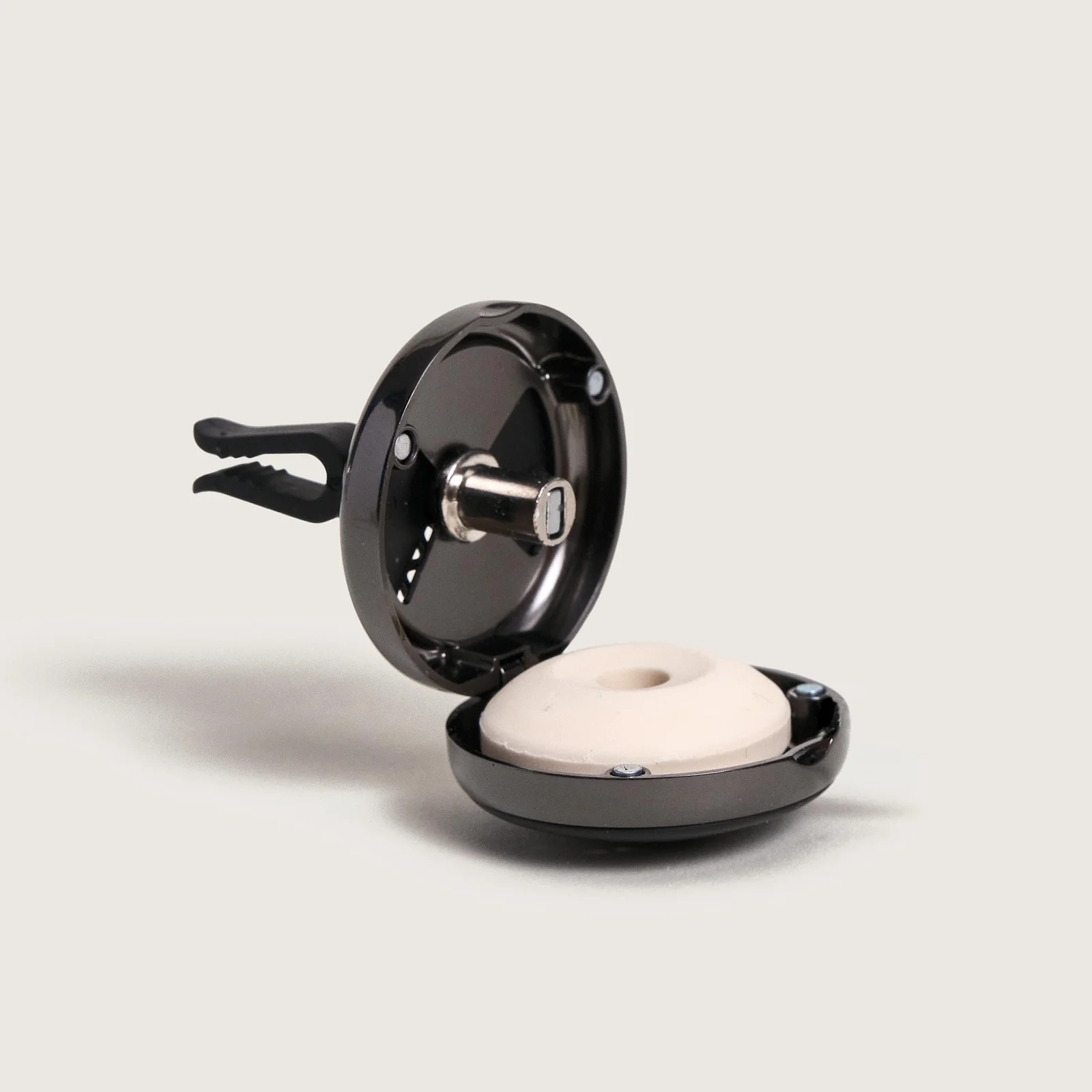 – O difusor automóvel modular Velours d’Orient cativa com o seu design em Gun Metal/Preto, concebido para se integrar elegantemente no interior do seu veículo. A sua modularidade permite adaptar a difusão às suas preferências, oferecendo uma experiência personalizada em cada viagem.