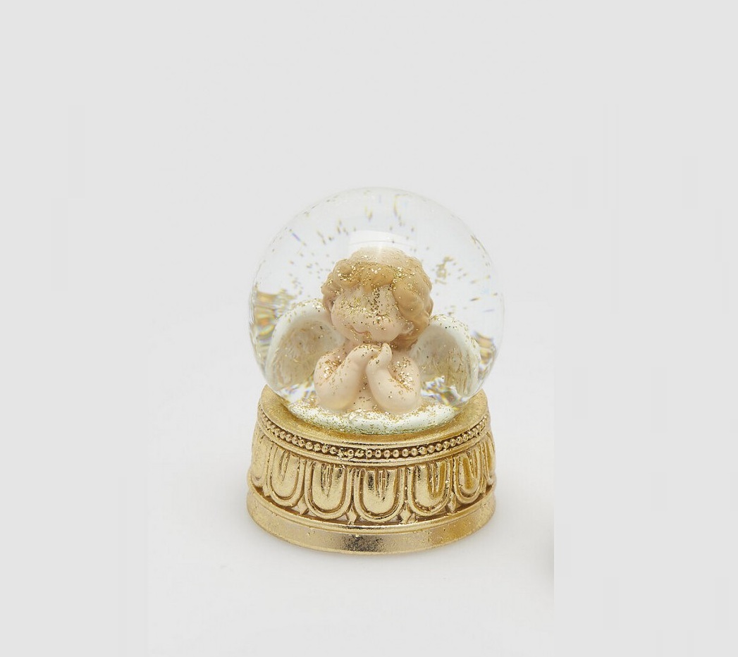 Globo de Neve 9cm Anjo Base Dourada: modelo mãos fechadas