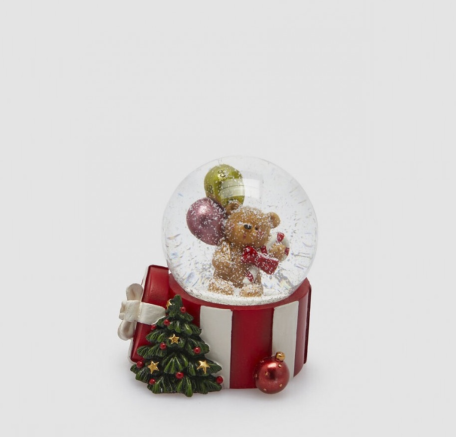 – Globo de Neve 9cm Prenda Riscas Branca e Vermelha: Urso Balões