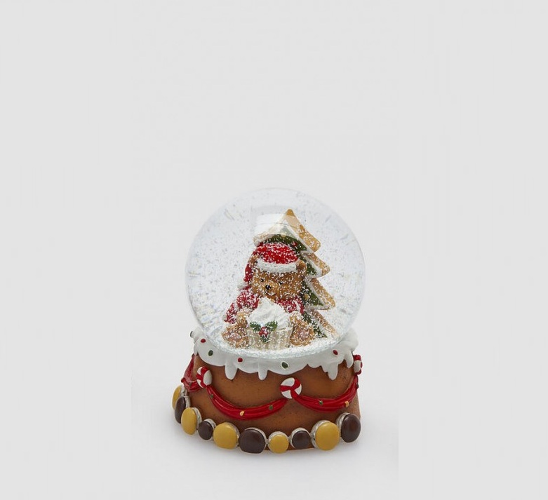 – Globo de Neve 9cm Urso Guloso: modelo Gorro e Pinheiro atrás