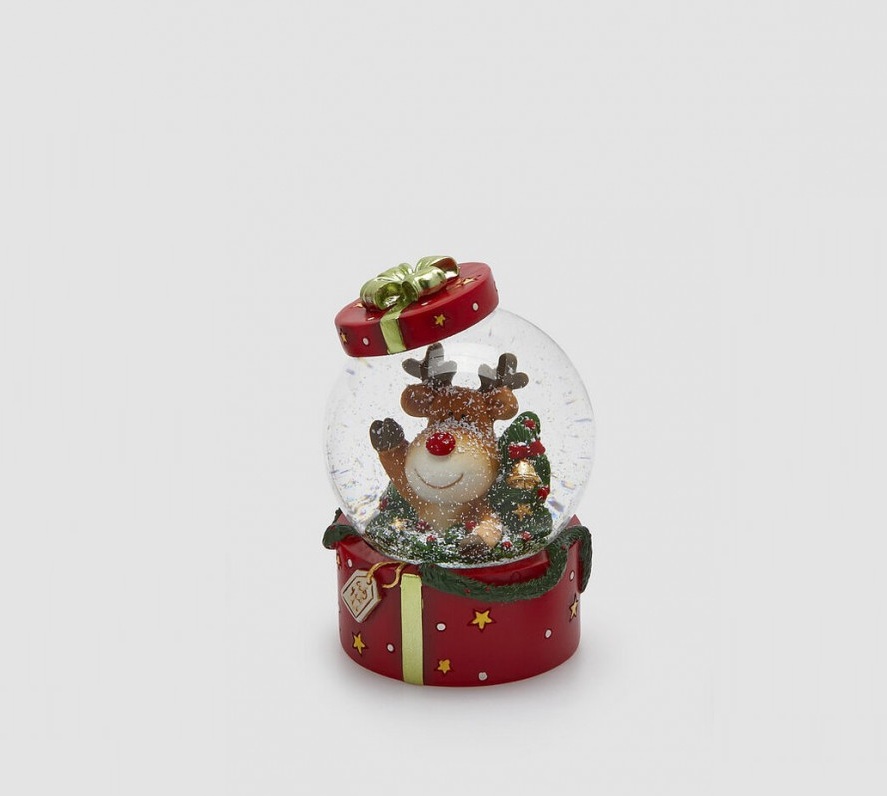 – Globo de Neve Caixa Vermelha 10cm: Rena