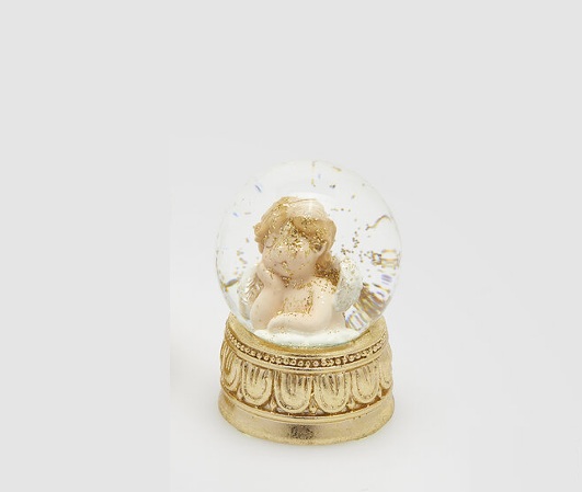 Globo de Neve mini 7cm Anjo Base Dourada: modelo mão no queixo
