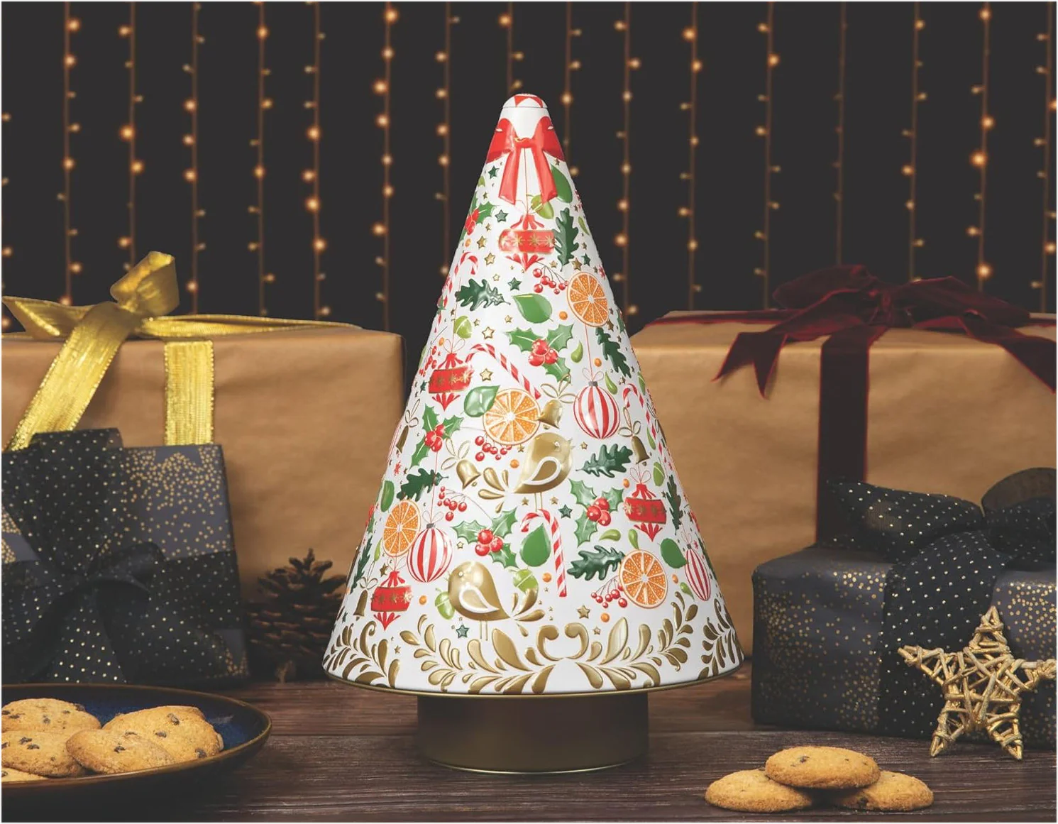 – Com música de corda: quando roda a base, toca a música “Oh Christmas Tree”. Abre saindo a parte da árvore mesmo, em baixo fica tipo prato.