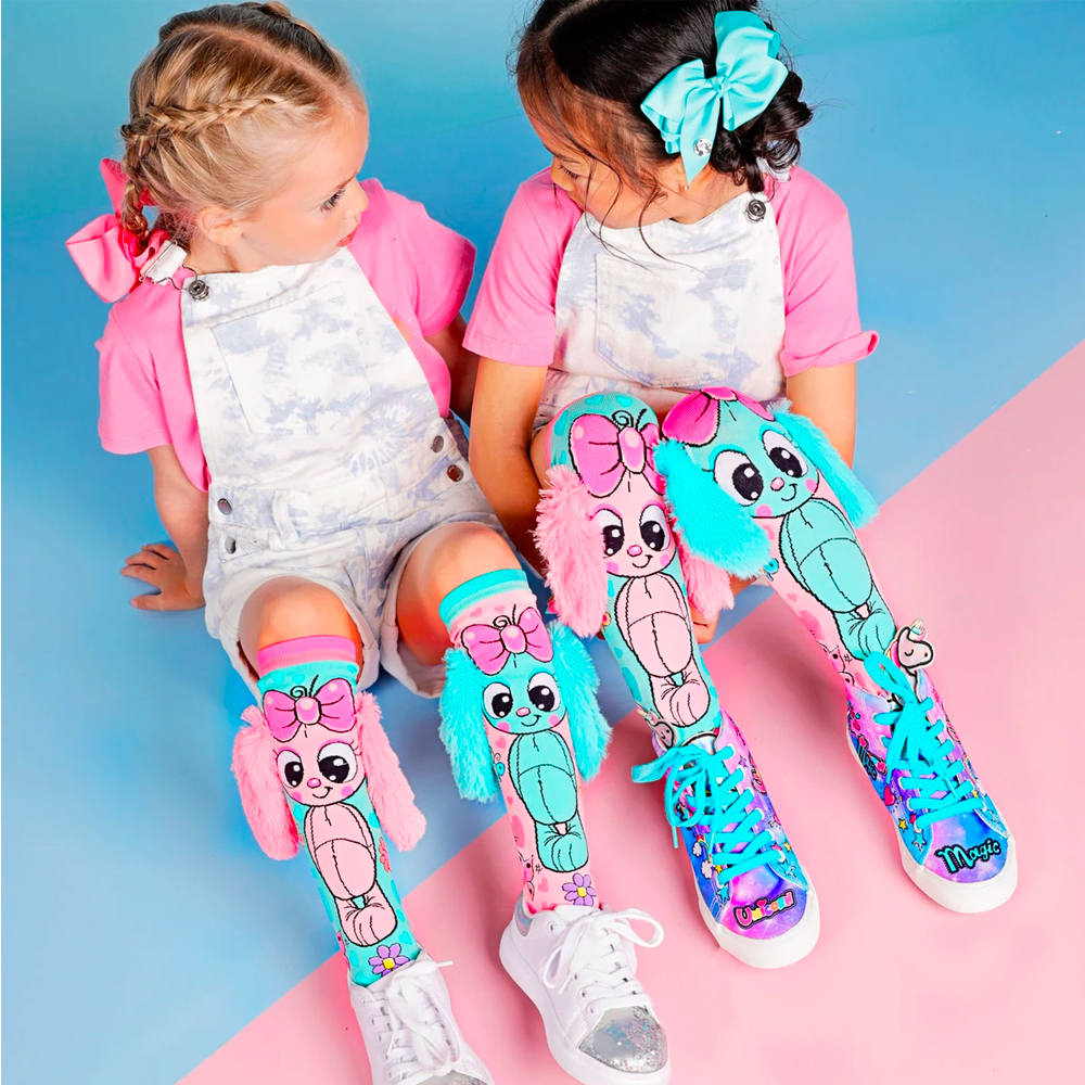 - Meias Infantis e Adultas (6-99): O nosso tamanho mais popular. Estas meias são de tamanho único e servem para crianças dos 6 aos 99 anos. Podem servir em adultos, mas recomendamos até ao tamanho 41 europeu. Note que têm elasticidade limitada em gémeos maiores ou mais musculados. As meias com padrões menos chamativos, como (Meias de Sereia, Laços de Alcaçuz, Folhos de Sereia, Notas Musicais, Néon, Arco-Íris Tie Dye, Folhos Mágicos, Gelado, Tie Dye) têm melhor elasticidade e recomendamos estes padrões para adultos para evitar problemas com o estiramento.