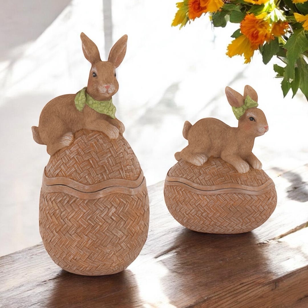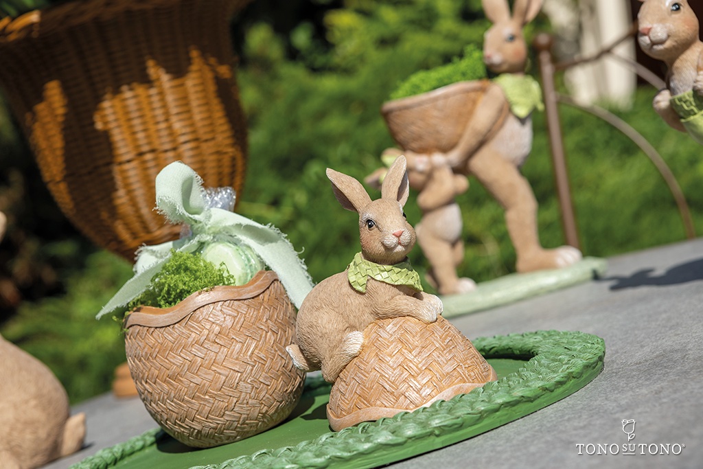 – Pote Coelhinho Castanho Laço Verde 15cm