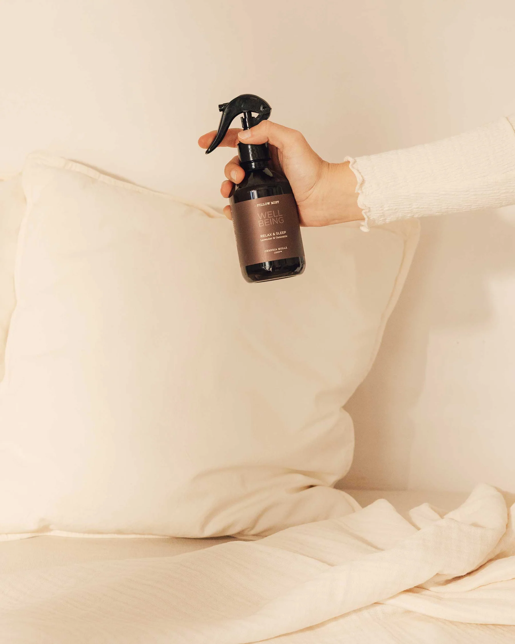 – Este spray para almofadas foi formulado para pulverizar suavemente almofadas, lençóis ou qualquer tecido próximo, libertando um aroma reconfortante que prepara o corpo e a mente para um sono profundo e reparador. A sua fragrância envolvente cria uma atmosfera de calma imediata, ajudando a aliviar a tensão, a desligar-se do ritmo do dia e a promover uma sensação de serenidade que dura toda a noite. Ideal para incorporar na sua rotina noturna e desfrutar de um descanso consciente e reparador.